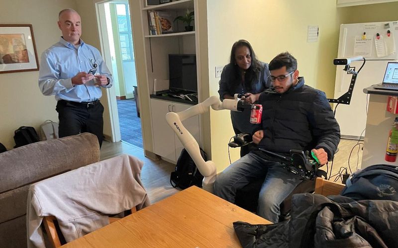 Wheelchair-mounted assistive robotic arm for independent daily living.